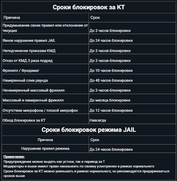 • Наказание: Перевод за зеков + Рес зека или FreeDay ему в следующем раунде